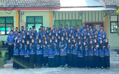 Foto bersama ibu Kepala Sekolah dengan Guru dan Tenaga Kependidikan